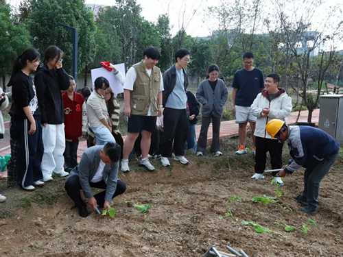 在法学院党总支副书记应俊等老师带领下,同学们于北门种植实验基地热情投入劳动。兰溪校区后勤服务部党支部书记董献斌担任“农艺导师”,细致讲解并示范油菜栽种要领。活动中,师生们分工协作,松土、运苗、栽种、浇水,各个环节井然有序,田垄间充满了忙碌的身影与欢声笑语。
