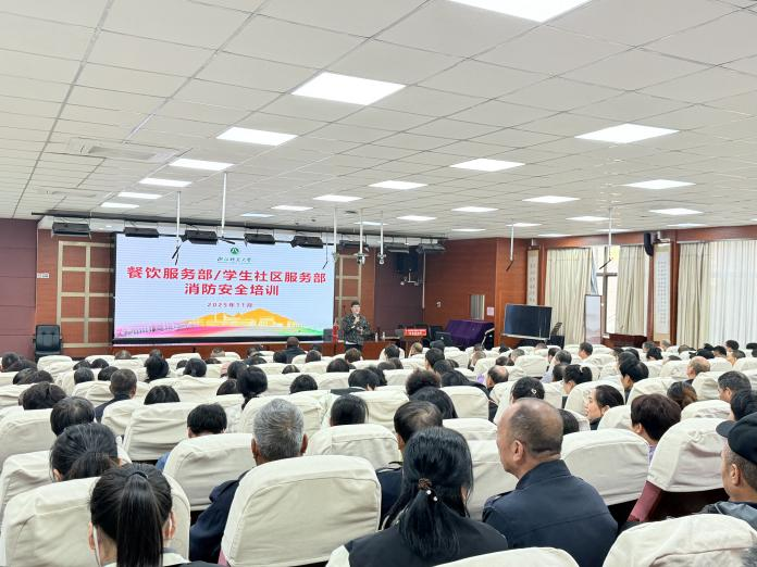 1114日下午,学生社区服务部党支部在17幢报告厅组织开展了消防知识专题培训。培训邀请学校安保部消防交通科科长段洪斌主讲,重点针对学生社区常见的消防安全隐患进行讲解,内容包括初期火灾处置流程及应急疏散要领等。通过专业讲解和实操演示,参与者掌握了基本的防火灭火技能。