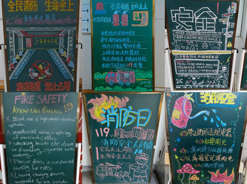 11月初,学生社区服务部党支部组织了各片区创作消防安全主题黑板报,通过图文并茂的形式在社区公共区域进行展示。板报内容聚焦宿舍用电安全、消防通道使用等实用知识,以寓教于乐的形式,营造了“消防安全、人人有责”的浓厚氛围。