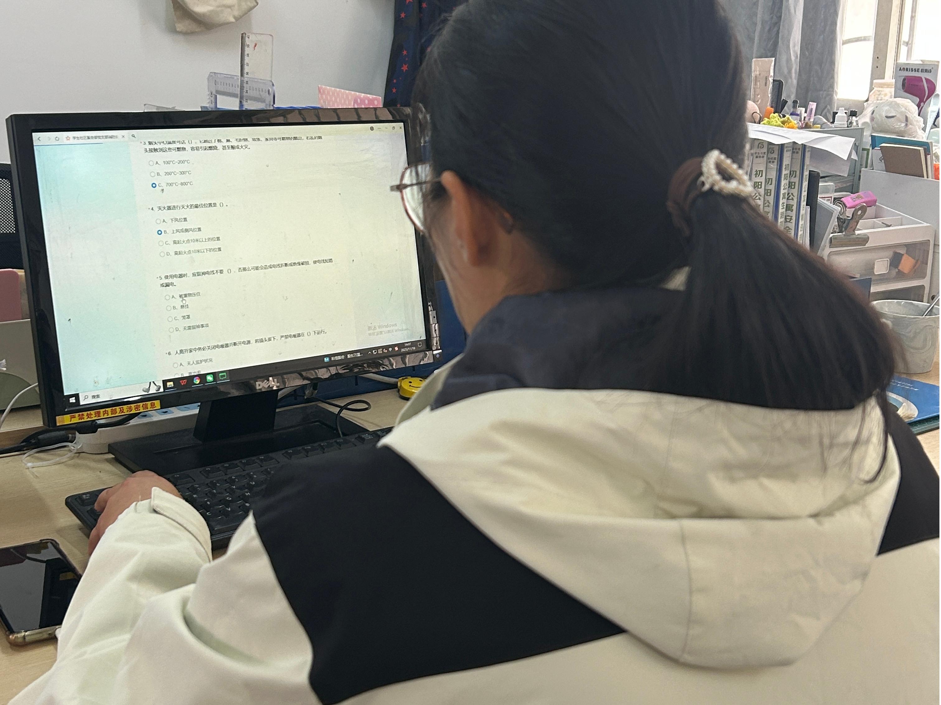 在消防安全知识竞答环节,学生社区服务部党支部围绕学生社区实际设置题目,将理论培训转化为实践应用。参与者通过知识竞答巩固消防安全基础,增强了学习的趣味性和时效性,使消防安全知识更加入脑入心。