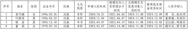 关于拟将翁巧琳等4名同志转为中共正式党员的公示